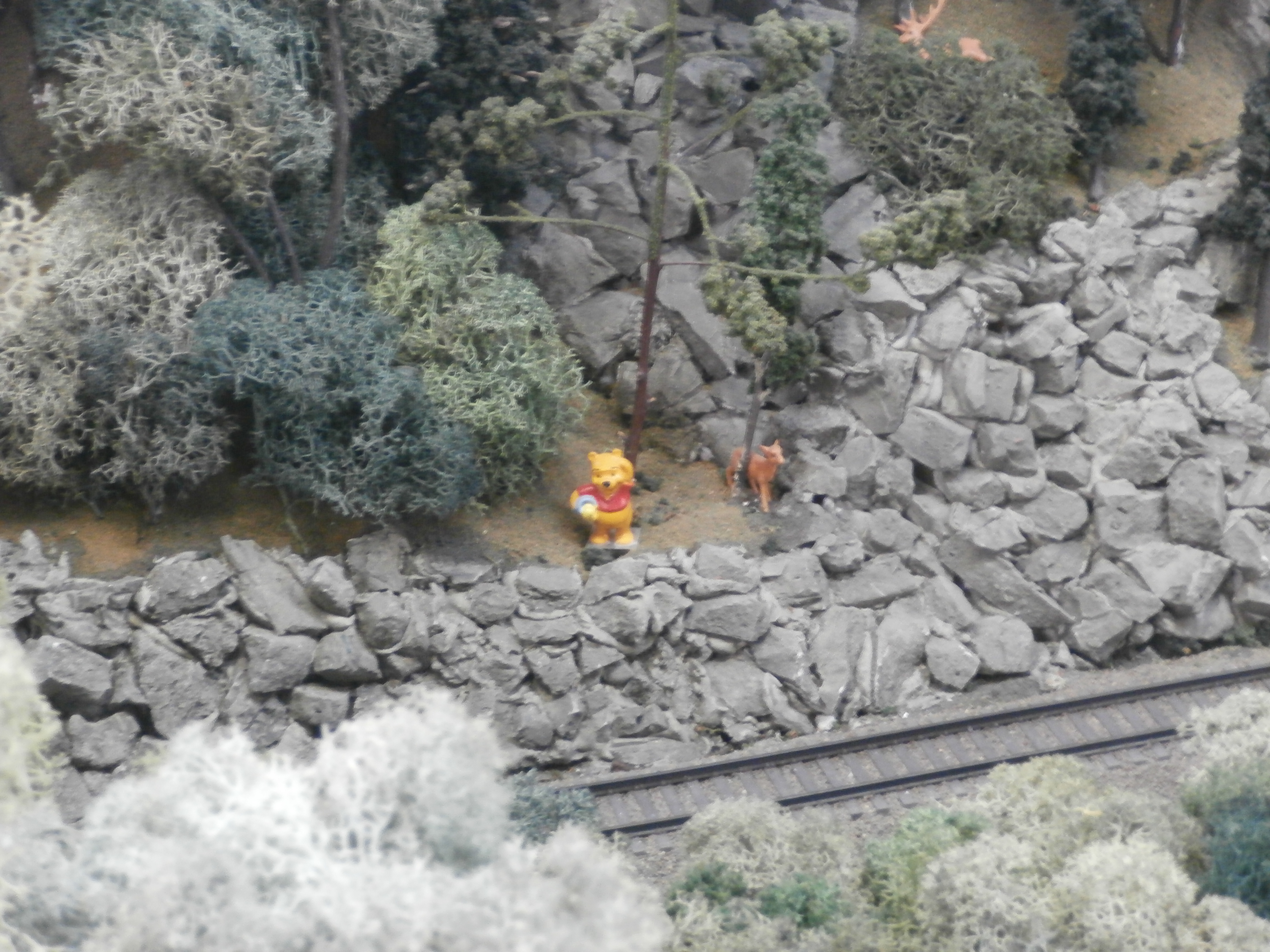 To keep young kids interested in what they were seeing, the model builders have incorporated cartoon characters into the layout:
